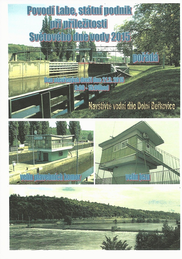 U příležitosti Světového dne vody 2015, pořádá Povodí Labe, státní podnik, 21.března od 9:00 do 12:00 hod. na zdymadle v Dolních Beřkovicích den otevřených dveří. Přijďte navštívit vodní dílo Dolní Beřkovice a podívat se do míst, kam se jen tak nedostanete.
