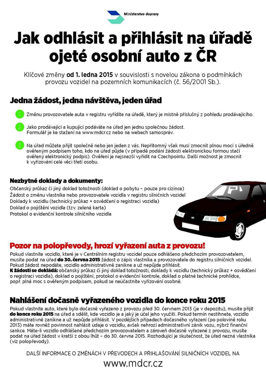 Úvod > Informace > Aktuality > Jak odhásit a přihlásit na úřadě ojeté osobní auto z ČR