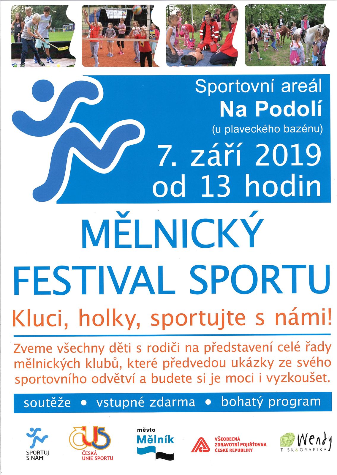 Sportovní areál Na Podolí (u plaveckého bazénu) Mělník, dne 7.9. 2019 od 13 hodin. Více informací v příloze.