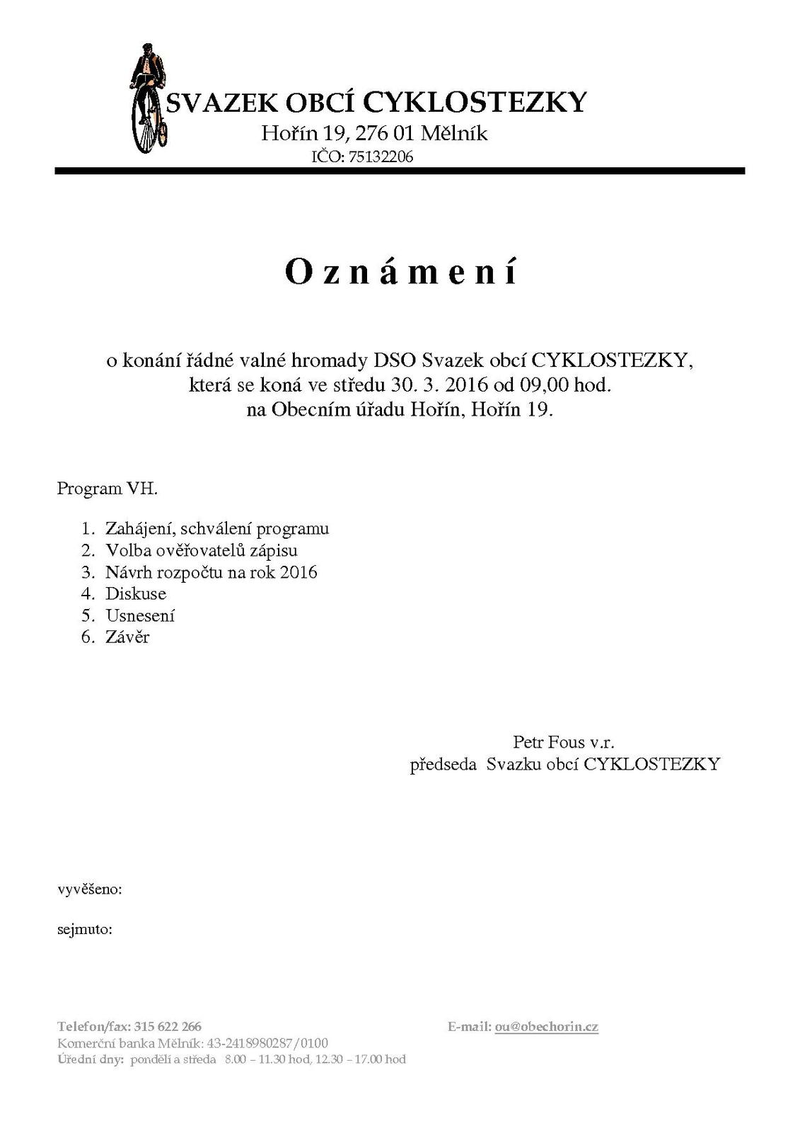 Úvod > Informace > Aktuality > Oznámení o konání valné hromady svazku obcí cyklostezky