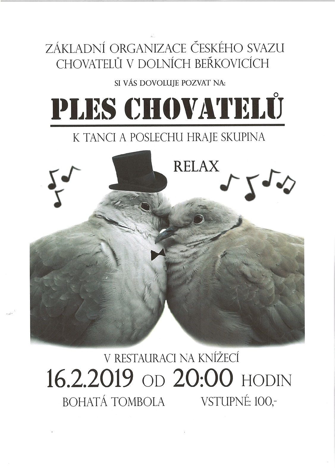 Ples chovatelů dne 16.2.2019 od 20:00 hodin. Bližší informace v přiloženém plakátu.