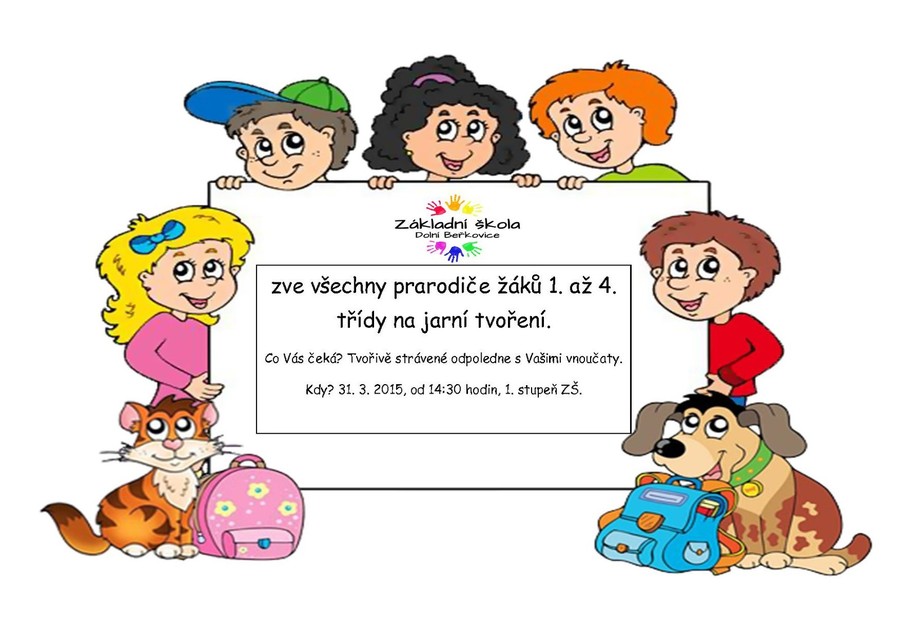 pozvanka na jarni tvoření_ZŠZákladní škola Dolní Beřkovice pořádá dne 31. března od 14:30 hod. v prostorech I. st. základní školy jarní tvořivé odpoledne s prarodiči žáků 1. až 4. ročníků.
