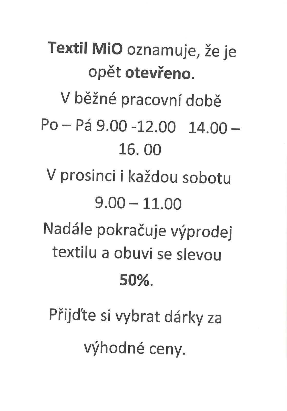 Úvod > Informace > Aktuality > Znovuotevření obchodu MiO