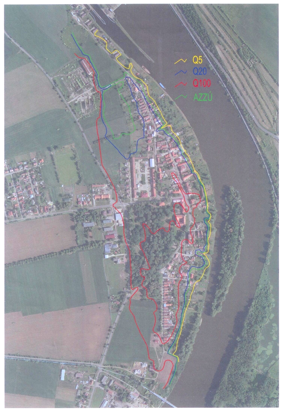 Barevně vyznačené čáry zobrazují jednotlivé průběh povodní červená čára je zátopové území stoleté vody. Tohoto stavu by nemělo bý dosaženo. Předpokládaná kulminace je někde kolem 50 leté vody. Něco mezi modrou a červenou značkou na mapě. Informace z 13:00: Labe v Mělníce by mělo kulminovat na kótě 840 cm cca 3500 m3/s. Odpovídá to stále povodním roku 2006 + cca 1 - 1,5 m. Tyto informace jsou platné do 19 hodiny do dalšího zasedání krizového štábu. Doufáme, že tato informace je správná.
