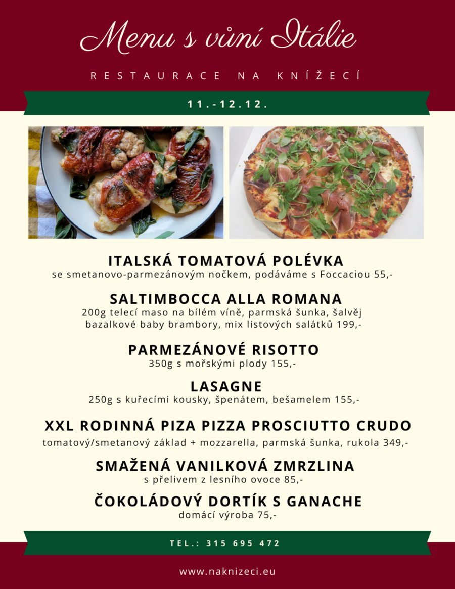 Úvod > Informace > Propagace a reklama > Restaurace na Knížecí zve na víkend s vůní Itálie